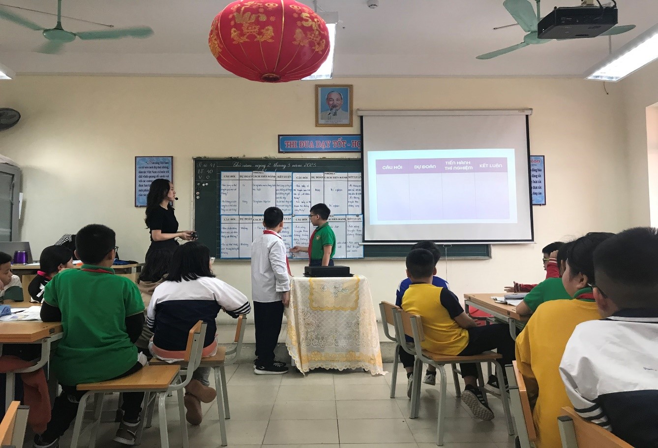 trình bày dự đoán ban đầu, đề xuất câu hỏi, đề xuất phương án nghiên cứu và tiến hành các thí nghiệm nghiên cứu để kiểm chứng. Học sinh rất hào hứng khi được tự mình cùng các bạn trong nhóm tiến hành thí nghiệm và rút ra kiến thức cho bài học. Cô giáo đã thực hiện tốt vai trò gợi mở, dẫn dắt cho học sinh. Qua đó, khơi dậy tính tò mò, ham muốn khám phá, và say mê khoa học của các em.