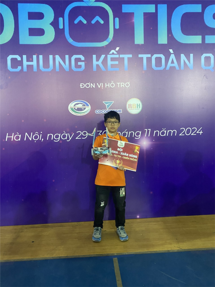 Trải qua các vòng thi đấu ở các cấp, ngày 30/11/2024, em Đồng Xuân Hùng lớp 5A2, trường Tiểu học Lý Thường Kiệt, quận Long Biên và em Phạm Bình Minh lớp 5A1 trường Tiểu học Dục Tú, huyện Đông Anh đã tham gia vòng chung kết toàn quốc cuộc thi “Sáng tạo Robotics” năm 2024. Bằng sự nỗ lực không ngừng nghỉ, tinh thần sáng tạo, các em đã có phần thi thể hiện tài năng hết sức thuyết phục và mang về những thành tích không chỉ cho riêng mình mà còn là niềm vinh hạnh cho nhà trường.