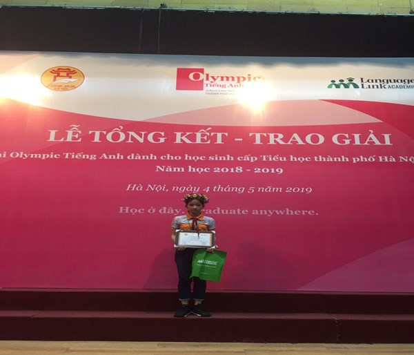 Nguyễn Khánh Linh - Nhận giải Nhất Cuộc thi Olympic Tiếng Anh dành cho học sinh tiểu học thành phố Hà Nội lần thứ XVI.