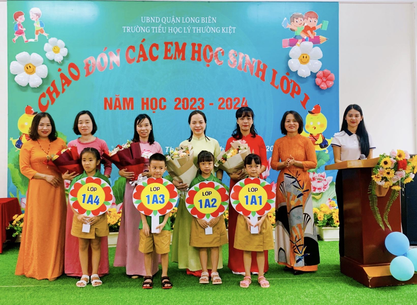 Chương trình chào đón học sinh lớp 1 đã khép lại song những dư âm đẹp đẽ về buổi lễ sẽ đọng lại mãi trong tâm trí của các thầy cô giáo, các bậc phụ huynh và các con học sinh. Từ hôm nay, các con học sinh lớp 1 sẽ cùng nhau học tập, cùng nhau vui chơi dưới mái trường Tiểu học Lý Thường Kiệt – ngôi trường với bề dày thành tích trong nhiều năm qua, với đội ngũ các thầy cô giáo tâm huyết, yêu nghề mến trẻ. Trường Tiểu học Lý Thường Kiệt sẽ là TRƯỜNG HỌC HẠNH PHÚC, là mái nhà thứ hai, là nơi ươm mầm những ước mơ tuổi thơ của các con. Mỗi ngày đến trường là một ngày vui, các con sẽ được đón nhận những tình cảm yêu thương, những bài học hay, bổ ích mà thầy cô dành cho các con. Đó là hành trang đầu tiên giúp các con đến với cánh cửa của tri thức, khơi dậy trong tâm hồn trong sáng của các con những bài học làm người. Chúc các con một năm học mới đạt được nhiều thành công – mỗi con sẽ là một bông hoa đẹp góp phần tô điểm cho vườn hoa Lý Thường Kiệt thêm rực rỡ.