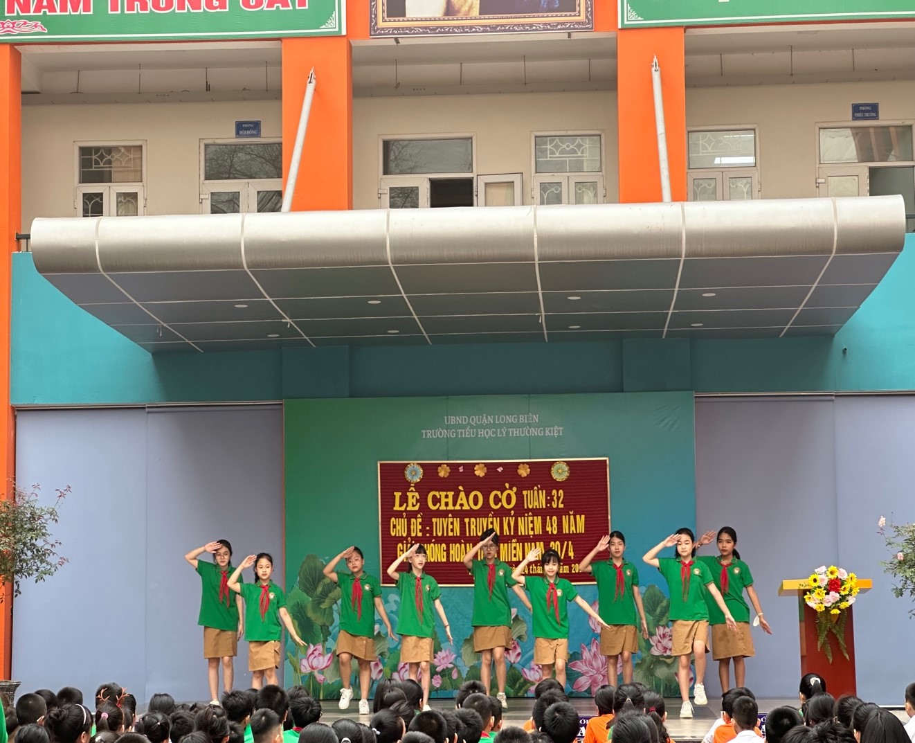 Hoà chung không khí chào đón ngày lễ trọng đại của dân tộc, chi đội 5A4 phụ trách trực tuần với chủ điểm: “Tuyên truyền kỷ niệm 48 năm giải phóng hoàn toàn miền Nam 30/4”. Chi đội đã vô cùng hào hứng, hăng say luyện tập để có được những tiết mục đặc sắc nhất trong buổi sinh hoạt dưới cờ.