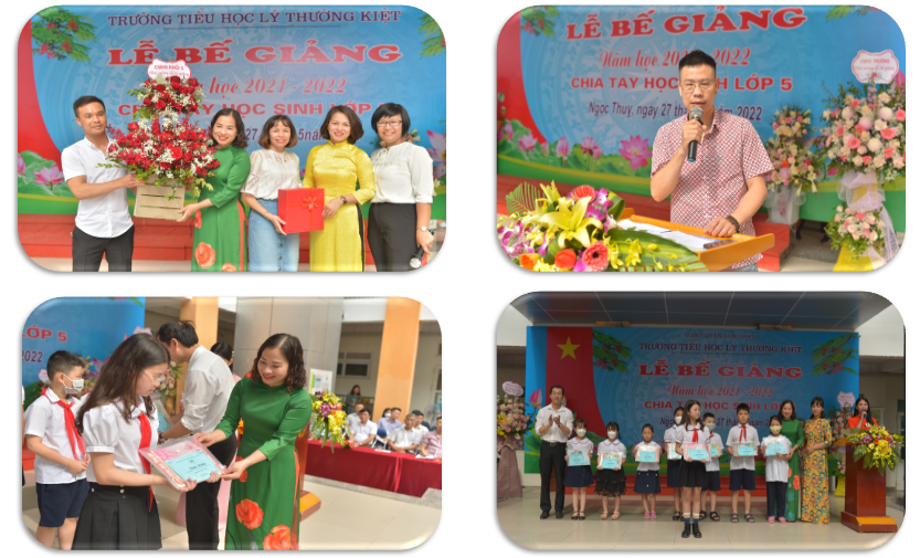 Buổi lễ bế giảng năm học cũng là lúc nói lời chia tay các con học sinh lớp 5, ban đại diện cha mẹ học sinh lớp 5, đại diện học sinh lớp 5A gửi lời tri ân sâu sắc đến Ban giám hiệu nhà trường và toàn thể các thầy cô giáo. Chúc các con luôn chăm ngoan học giỏi và mãi nhớ về ngôi nhà chung Tiểu học Lý Thường Kiệt yêu dấu.