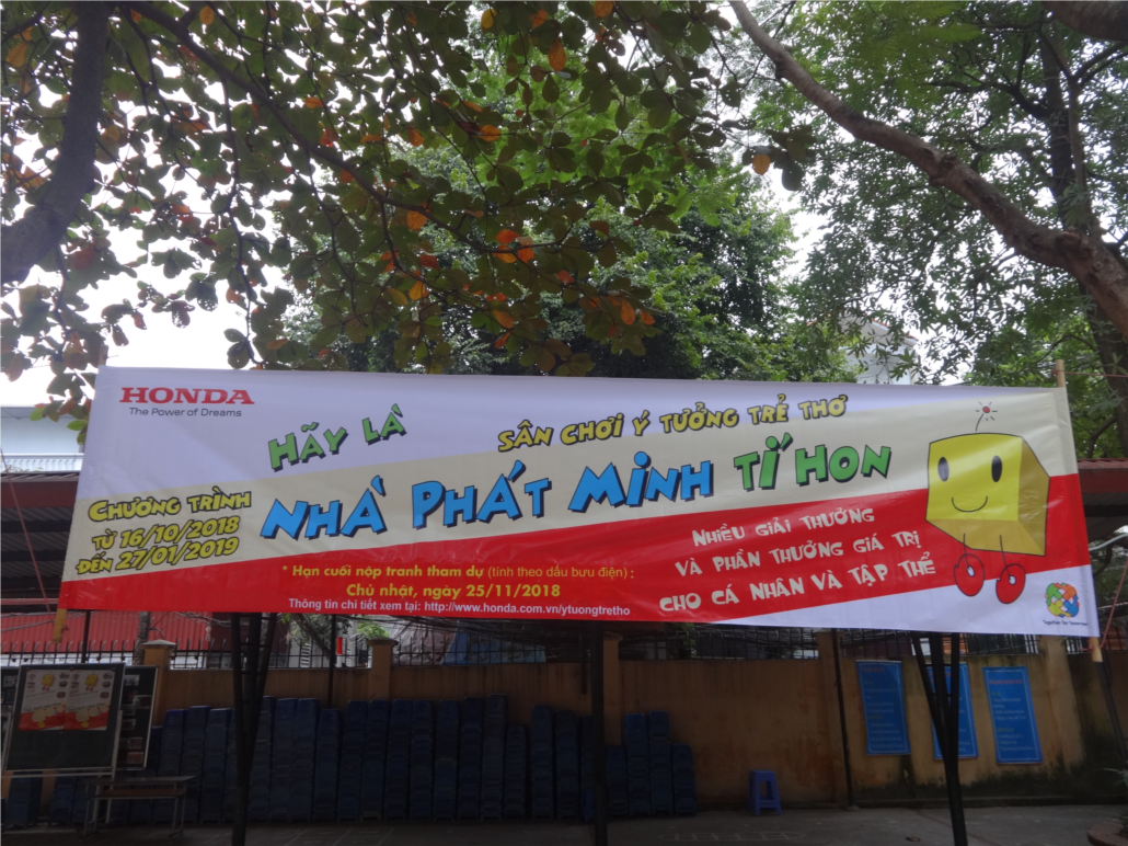 Băng rôn được trên ngay tại sân trường giúp các em dễ tìm hiểu thông tin