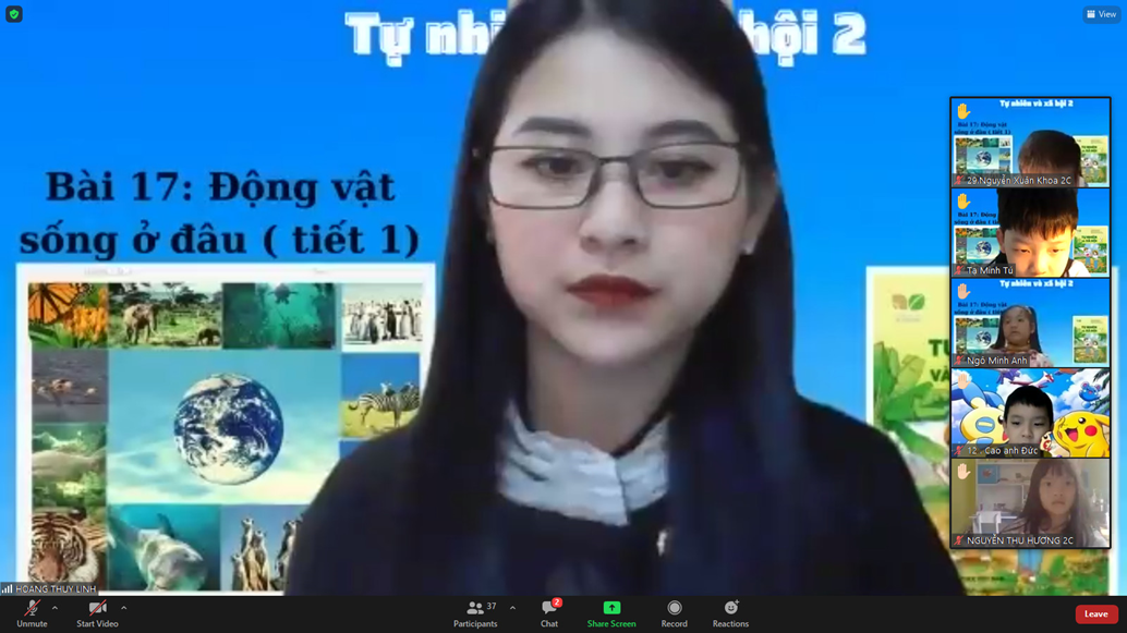 Do đặc điểm tâm, sinh lí lứa tuổi nên khả năng tập trung của học sinh lớp 2 chưa cao. Hiểu được điều đó nên trong tiết chuyên đề của mình, cô giáo Thùy Linh đã khởi động tiết học bằng bài hát: “Thế giới động vật”. Với giai điệu vui tươi, cô trò lớp 2C đã nhẹ nhàng kết nối với nội dung bài. Ngay khi vẫn chưa hết hào hứng vì được múa và hát, học sinh lại được tăng tính tương tác khi cô cho học sinh thực hiện Hoạt động 1 trên phần mềm classkick. Với hoạt động này, người học không chỉ biết được nơi sống của các con vật trong bài mà còn biết thêm được nơi sống của nhiều loài động vật khác.