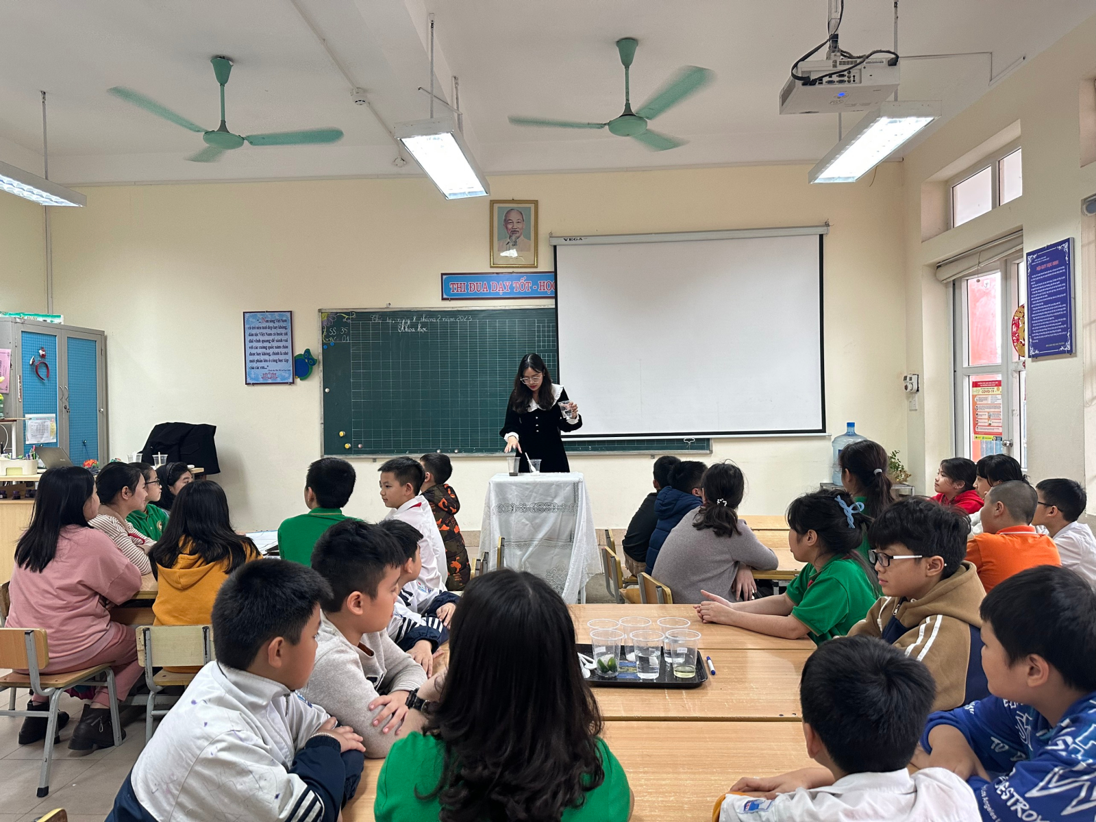 Được sự chỉ đạo sát sao của Ban giám hiệu nhà trường, kế hoạch chuyên môn của Tổ 5, cô giáo Đào Thị Thu Thảo và học sinh lớp 5A3 trường Tiểu học Lý Thường Kiệt đã thực hiện thành công tiết chuyên đề môn Khoa học, bài “Dung dịch” với phương pháp “Bàn tay nặn bột”. Tiết học được diễn ra trong không khí hào hứng, sôi nổi của các em học sinh. Trong tiết học, học sinh được tham gia nêu những hiểu biết ban đầu của mình về thế giới xung quanh, được đặt câu hỏi về những điều mình còn băn khoăn thắc mắc, tự giải quyết vấn đề thông qua hoạt động thực hành làm thí nghiệm, rồi đưa ra đánh giá, thảo luận so sánh kết quả với các bạn trong nhóm để đi đến kết luận kiến thức.