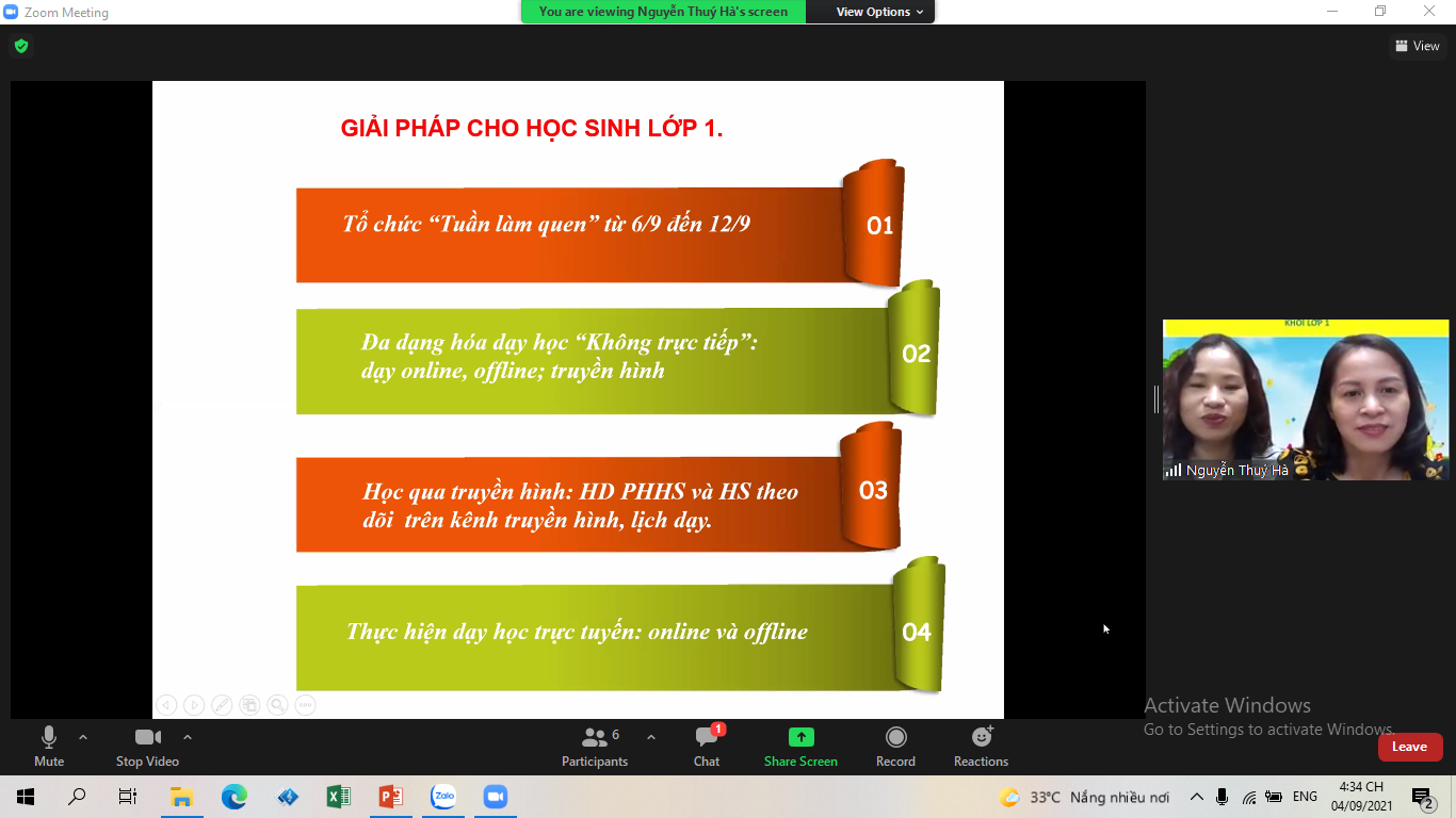 Tham dự cuộc họp trực tuyến có cô giáo Nguyễn Thúy Hà – Hiệu trưởng nhà trường, cô giáo Đào Thị Huệ - phó hiệu trưởng , cùng các cô giáo dạy khối 1.