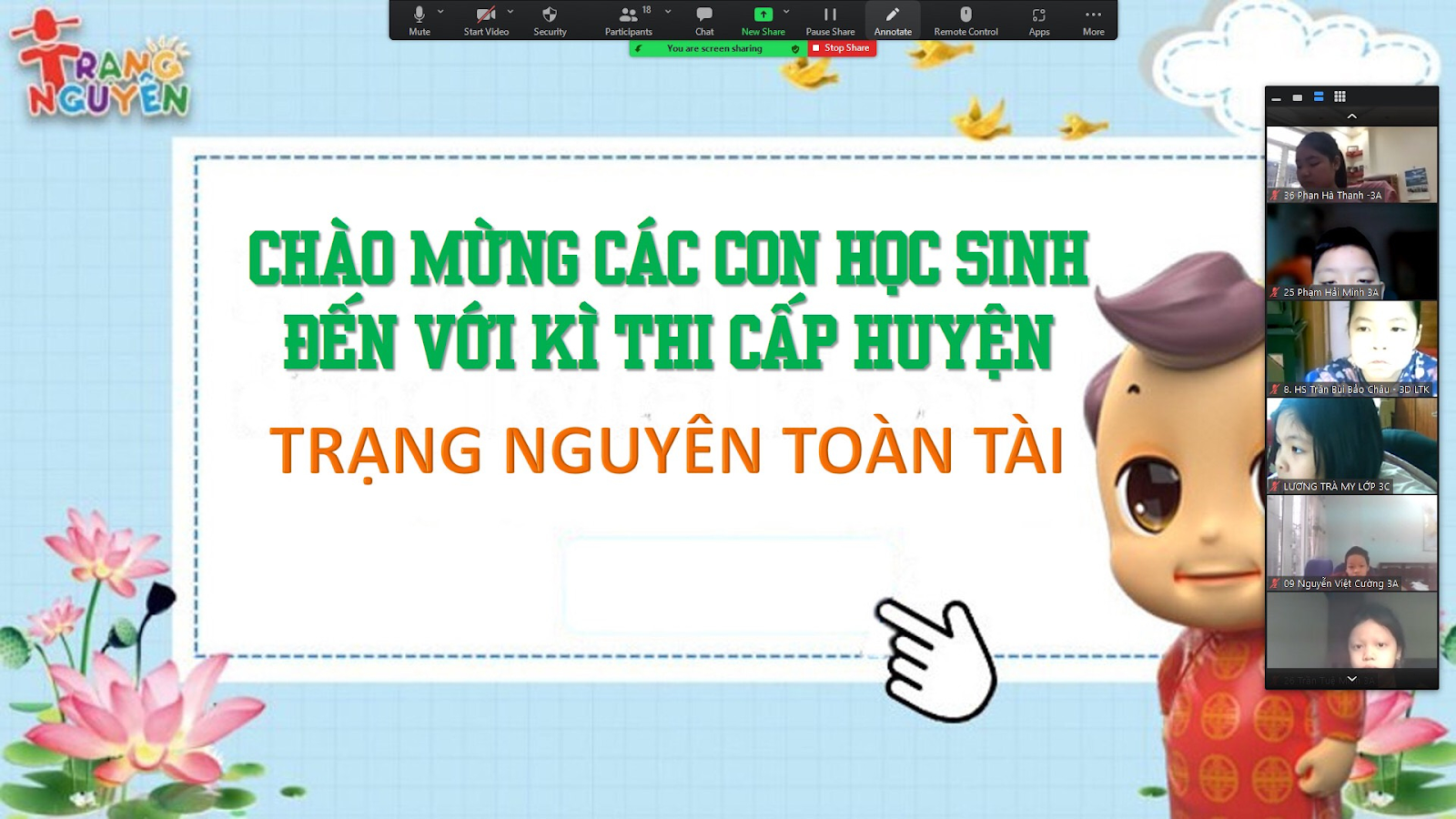 Với tổng số 181 học sinh tham gia thi Trạng Nguyên Toàn Tài cấp trường, nhà trường đã chọn ra 91 thí sinh xuất sắc nhất để đến với vòng thi cấp Huyện. Chiếm tỉ lệ 50,2%. Cuộc thi Trạng nguyên Toàn Tài cấp Huyện tổ chức bằng hình thức trực tuyến nhằm đảm bảo công tác phòng chống dịch Covid – 19.