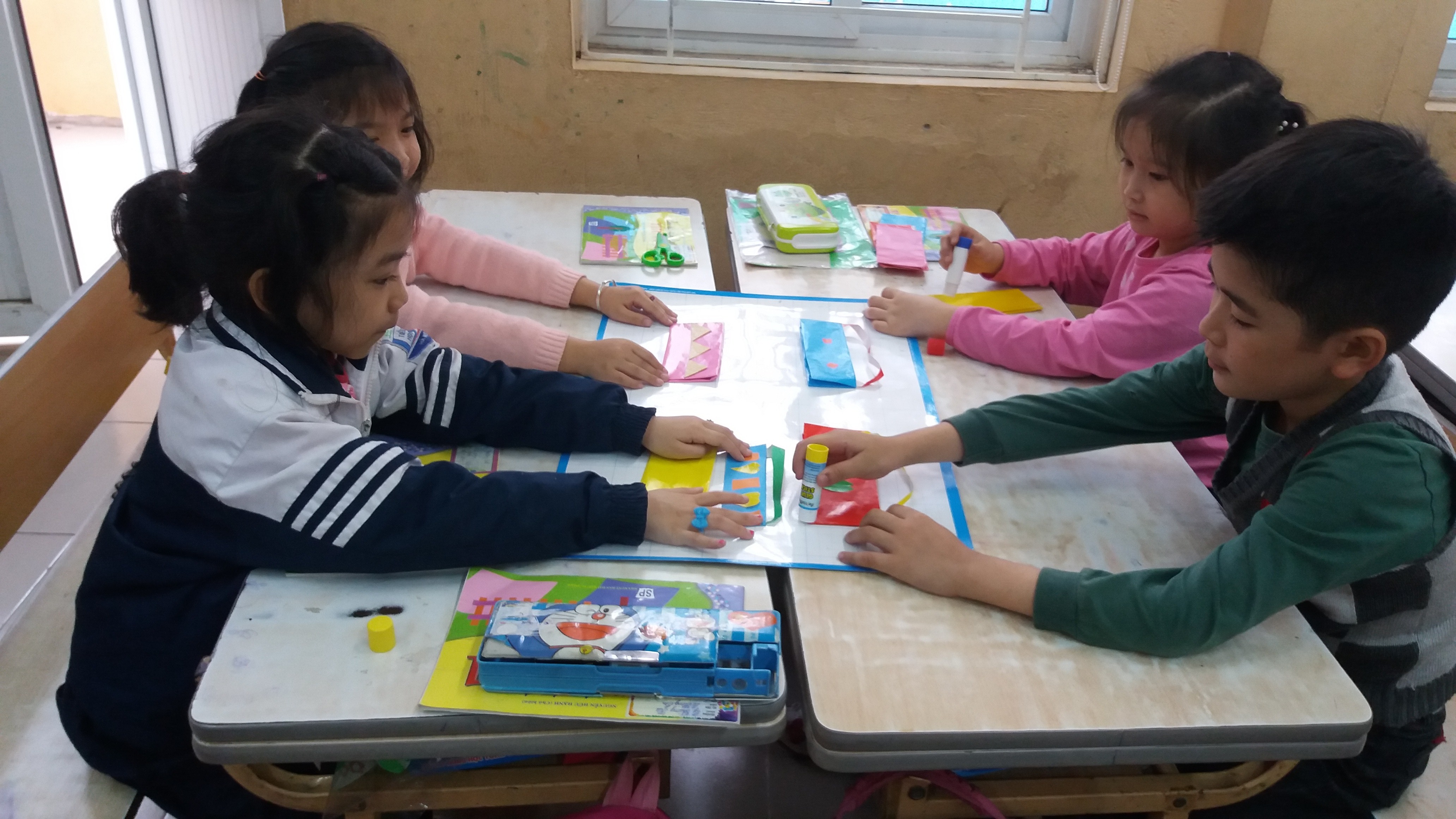 Học sinh lớp 1C thích thú cùng gấp và trang trí cái ví.