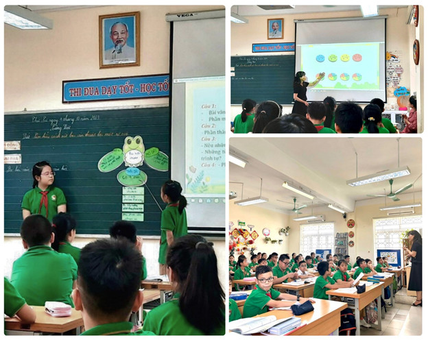 Mở đầu cho hội thi giáo viên giỏi cấp trường, cô giáo Trương Thị Bích Hảo - GVCN lớp 4A1 đã thực hiện thành công tiết Tiếng Việt lớp 4 với bài "Tìm hiểu cách viết bài văn thuật lại một sự việc". Trong tiết học, Cô giáo Trương Thị Bích Hảo đã khéo léo kết hợp các phương pháp, kĩ thuật dạy học hiện đại như kĩ thuật mảnh ghép, kĩ thuật phòng tranh,… để kích thích hứng thú học tập của học sinh, giúp cho giờ học diễn ra nhẹ nhàng mà hiệu quả. Tiết học còn diễn ra rất sôi nổi với sự hào hứng, tự tin trình bày của các em học sinh khi trình bày, chia sẻ về bài học.