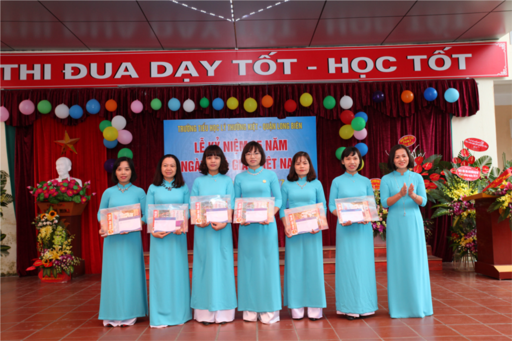 Cô giáo Đào Thị Huệ - Phó hiệu trưởng nhà trường trao giải cho các cô giáo có tiết dạy tiêu biểu trong đợt thi Giáo viên dạy giỏi cấp trường.