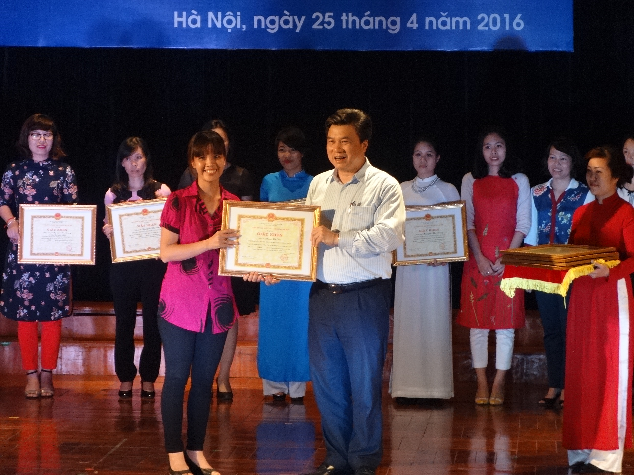 Đồng chí Nguyễn Hữu Độ - Giám đốc sở GD&ĐT Hà Nội trao giải Nhất
