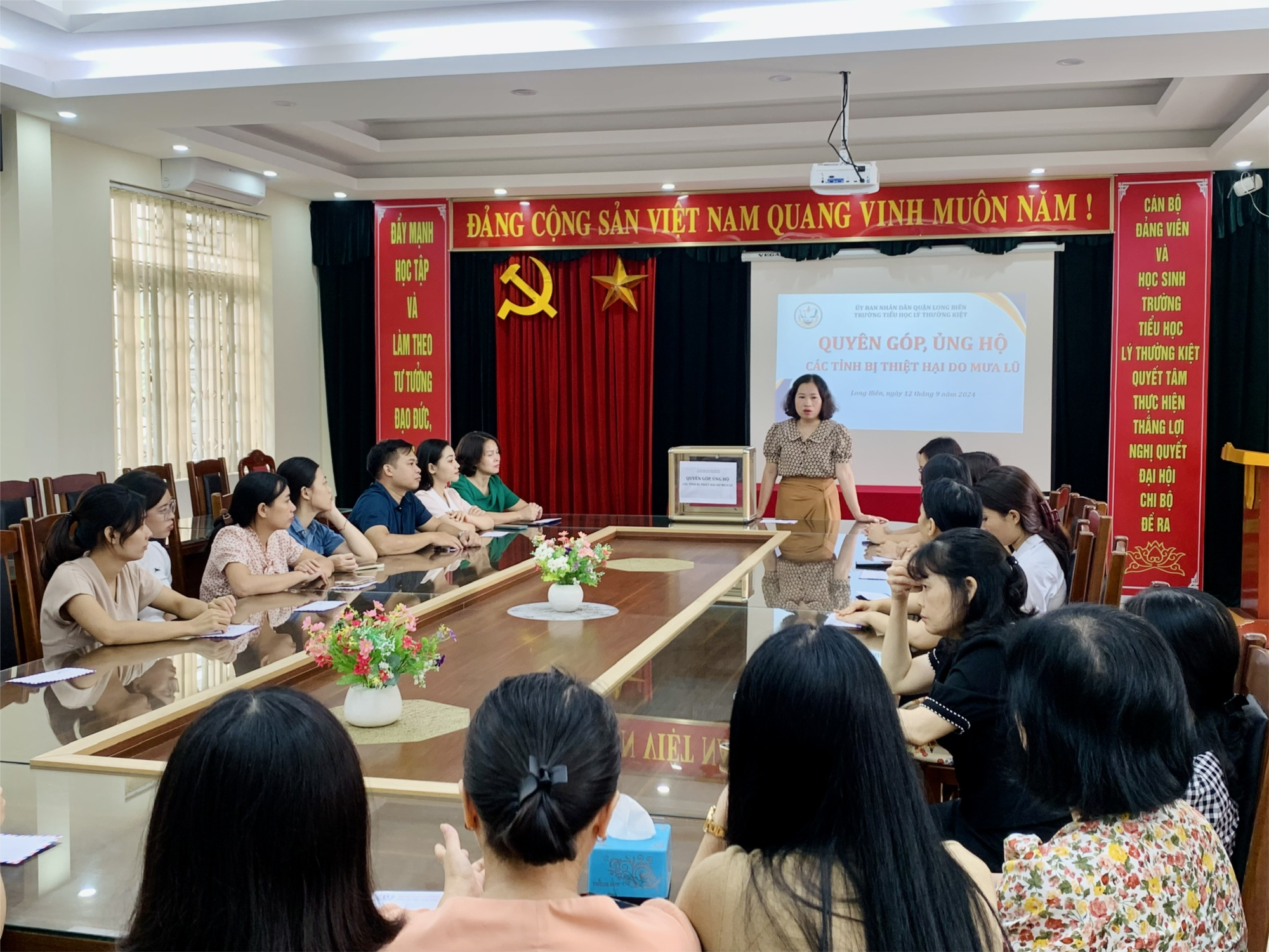 Thực hiện công văn 157/UB MTTQ và 160/LĐLĐ quận Long Biên về hưởng ứng lời kêu gọi “Nhân dân Thủ đô tham gia ủng hộ các tỉnh bị thiệt hại do bão lũ”, ngày 12/9/2024 BCHCĐ Trường TH Lý Thường Kiệt phối hợp với chính quyền nhà trường phát động đến CBGVNV, đoàn viên công đoàn với tinh thần “tương thân tương ái”, “lá lành đùm lá rách” cùng chung tay chia sẻ, ủng hộ nhân dân vùng bị thiệt hại do bão lũ. Việc làm nhỏ đó sẽ phần nào làm vơi bớt những đau thương, mất mát góp phần cùng người dân vùng lũ nhanh chóng ổn định đời sống.