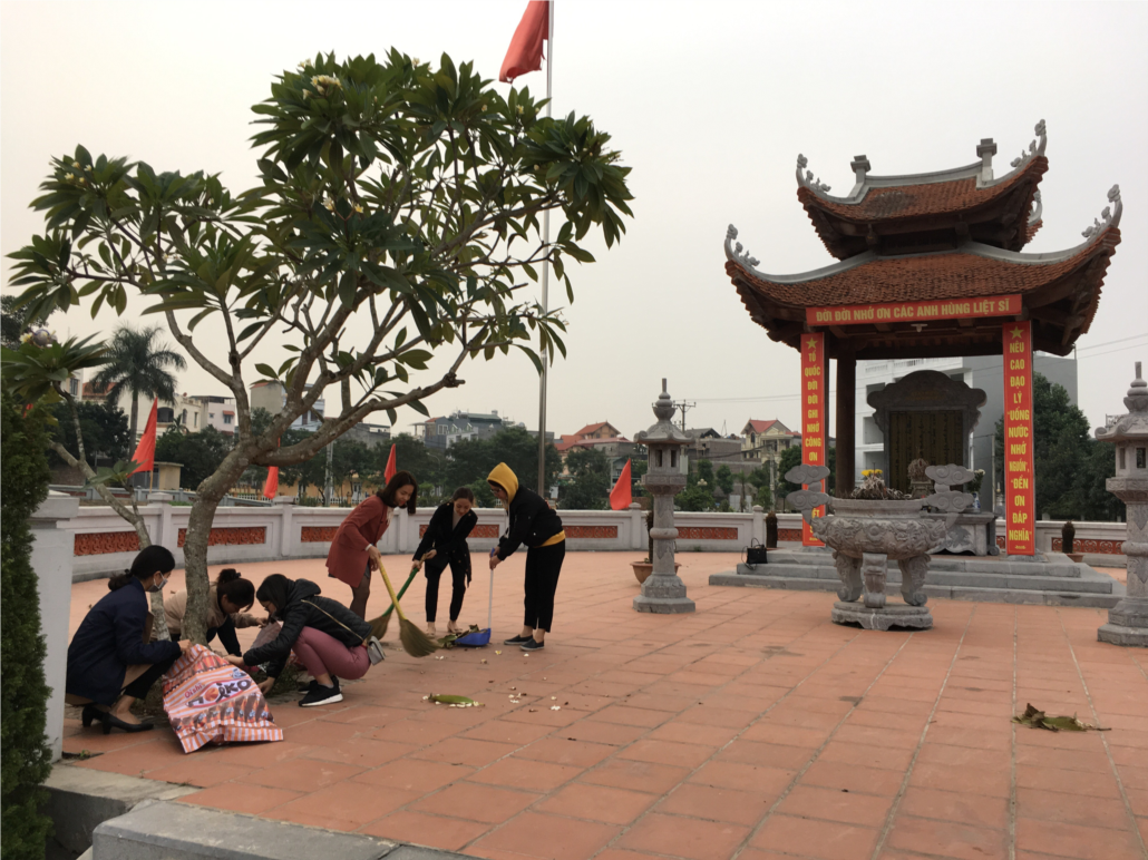 Chi đoàn Trường TH Lý Thường Kiệt dọn vệ sinh đài tưởng niệm Anh hùng liệt sĩ – phường Ngọc Thụy.