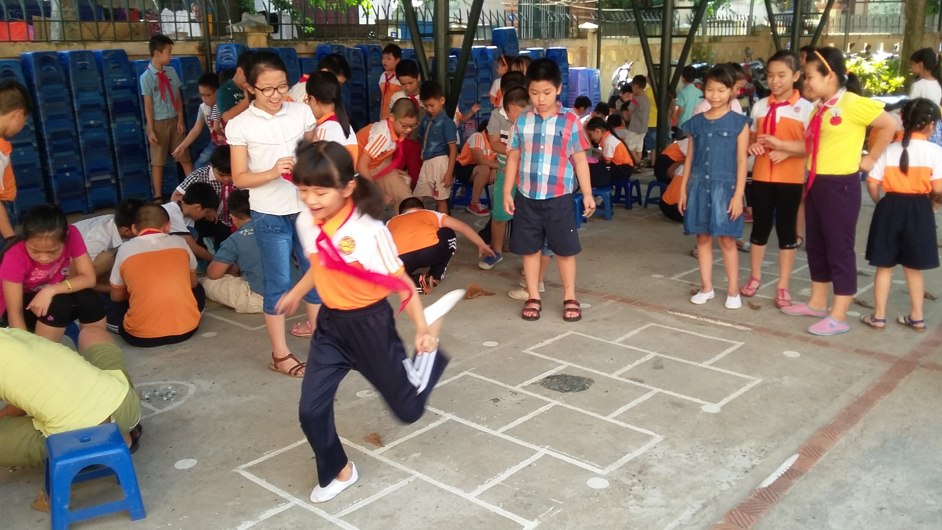 Xuất phát từ đặc điểm sân chơi hẹp, số lượng HS đông, ngay từ đầu năm học, trường Tiểu học Lý Thường Kiệt đã chọn trò chơi: Nhảy ô, bắn bi, Ô ăn quan để tổ chức cho học sinh chơi. Đây là trò chơi có tính chất chiến thuật thường dành cho hai người chơi và có thể sử dụng các vật liệu đa dạng, dễ kiếm để chuẩn bị cho trò chơi. Ô ăn quan dạy cho trẻ biết quan sát, rèn cho trẻ kĩ năng, kĩ xảo cá nhân, khả năng tính toán, phán đoán chính xác. Trò chơi có thể chơi với tất cả các khối lớp, không phân biệt lứa tuổi, không chỉ dừng ở phạm vi các bạn quen thân chơi với nhau mà từ đây cũng giúp các em giao lưu, kết bạn, trở thành những người bạn mới của nhau, giúp đỡ nhau trong cả học tập lẫn cuộc sống hàng ngày. Qua thực tế sau hơn 2 tháng triển khai tại trường, trò chơi đã thu hút sự chú ý và hứng thú trong học sinh, giờ ra chơi các em luôn nhanh chóng xuống sân với mong muốn tìm cho mình một bàn chơi hấp dẫn, các em còn lại thì quan sát và cổ vũ cho các bạn chơi, tỉ lệ tai nạn thương tích nhỏ do việc chạy nhảy, nô đùa trong giờ ra chơi cũng giảm đi rõ rệt. Hơn nữa các em luôn được nhắc nhở giữ gìn vệ sinh các nhân, công tác đảm bảo vệ sinh được thực hiện triệt để.