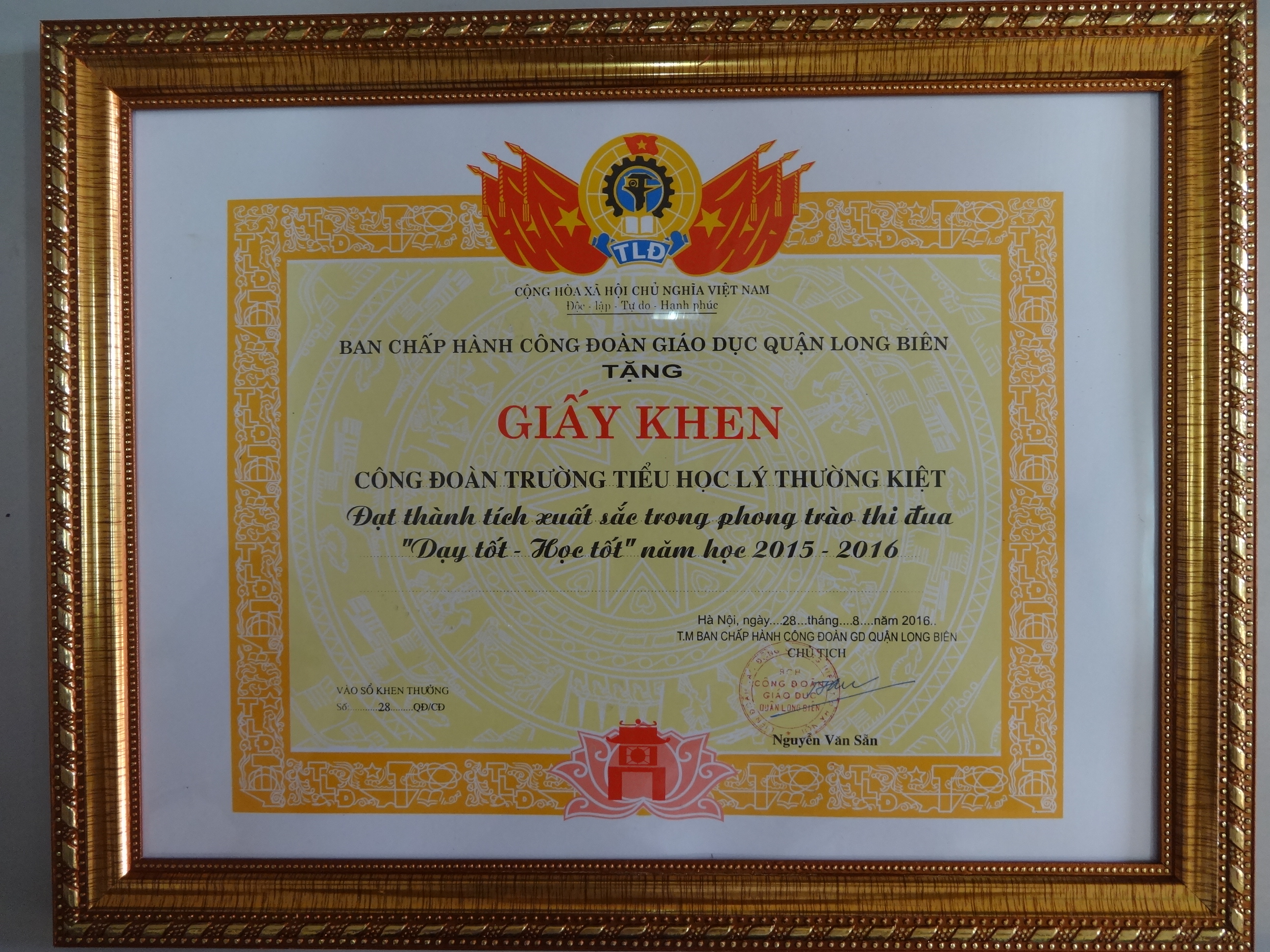 Thầy và trò trường Tiểu học Lý Thường Kiệt đã chính thức bước vào năm học mới 2016- 2017 được 2 tuần. Cùng với tinh thần háo hức đón chào năm học mới là niềm tự hào với những thành tích nhà trường đã đạt được trong năm học vừa qua. Năm học 2015 – 2016, với sự nỗ lực phấn đấu của tập thể CB- GV- NV và học sinh, trường Tiểu học Lý Thường Kiệt đã hoàn thành tốt các chỉ tiêu thi đua đề ra. Với 7/15 chỉ tiêu thi đua xếp loại Xuất sắc, 6/15chỉ tiêu thi đua xếp loại Tốt, trường được công nhận là tập thể lao động tiên tiến cấp Quận. Để đạt được thành tích đó, có sự đóng góp của tổ chức Công đoàn nhà trường. Tổ chức Công đoàn đã làm tốt công tác phối hợp với chính quyền trong việc tổ chức các hoạt động của nhà trường, động viên, khích lệ đoàn viên Công đoàn tích cực tham gia các phong trào thi đua của ngành. Ngày 9/9/2016, trong lễ tổng kết công tác Công đoàn ngành GD, Công đoàn trường Tiểu học Lý Thường Kiệt đã được công nhận Công đoàn vững mạnh xuất sắc cấp Quận.
