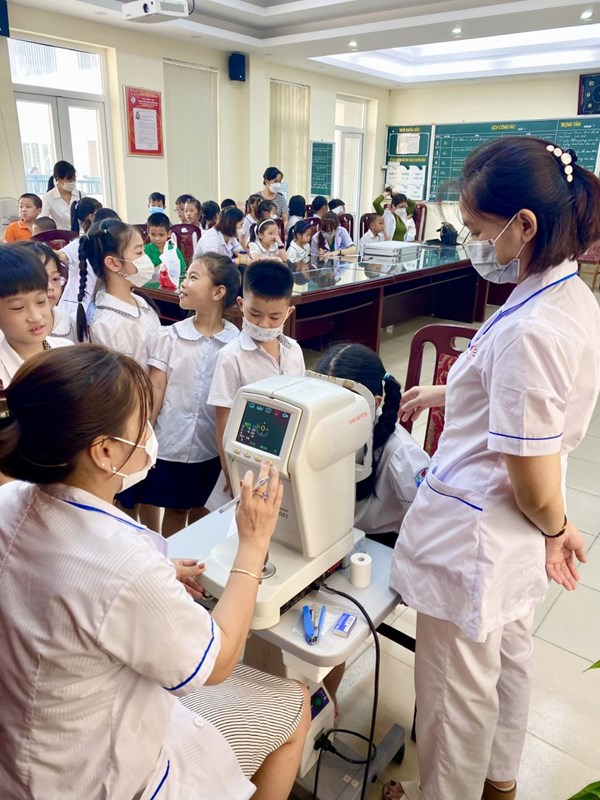 Ngoài khám trực tiếp cho từng học sinh, bệnh viện mắt cũng cử bác sỹ tuyên truyền cho các em hiểu giá trị và tầm quan trọng của đôi mắt, biết cách cách chăm sóc bảo vệ mắt với nội dung “Đôi mắt sáng- thế giới đẹp tươi” Đây là một chương trình chăm sóc sức khỏe nhãn khoa. Với sự thăm khám nhiệt tình của đội ngũ y bác sỹ chuyên môn cao cùng hệ thống trang thiết bị tân tiến mang đến tận nơi, buổi khám bệnh đã diễn ra thuận lợi, đạt được hiệu quả cao dù được triển khai trong thời gian ngắn.