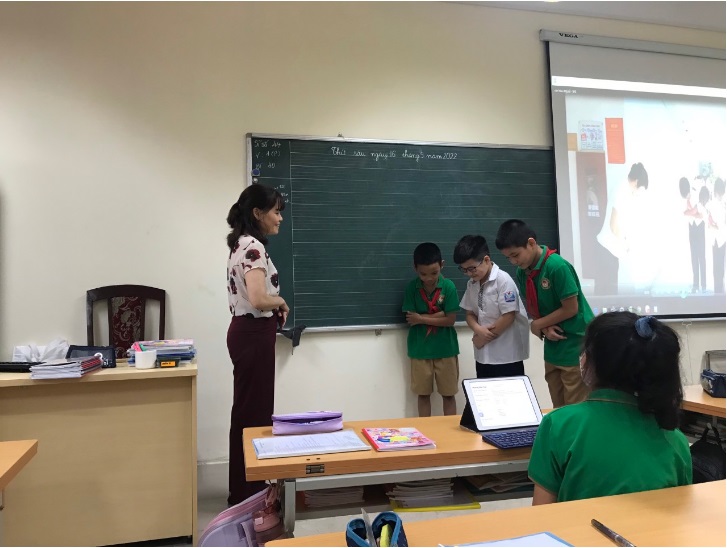 Học sinh lớp 4A1 thực hiện cúi chào cô trước khi ra về